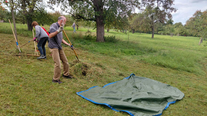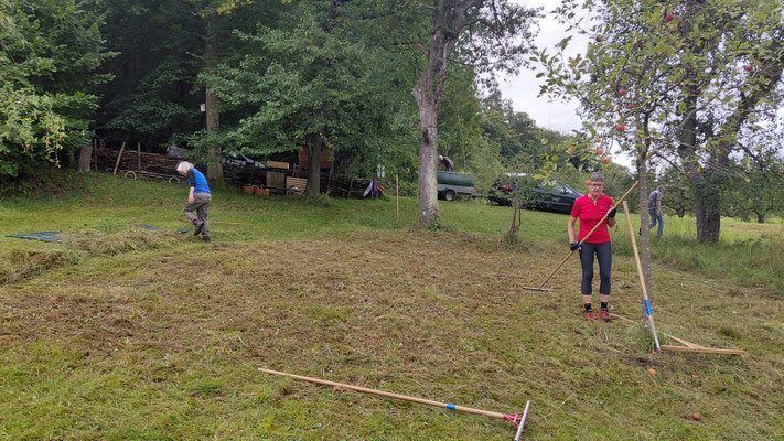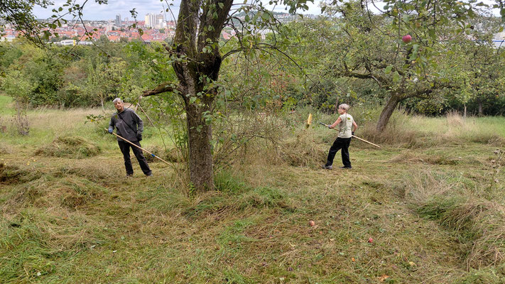 Fleissige Helfer haben am Mittwoch, 17.09.2025 auf unserer Streuobstwiese Mesner gemäht und den Grasschnitt von der Wiese geräumt!