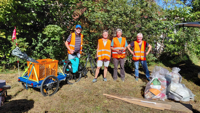 Wir hatten uns bei der stadtweiten Aktion das Glemstal von der Rutesheimer Straße flußabwärts vorgenommen - und waren ein kleines, aber hochmotiviertes Team. Auf den ersten Blick schien gar nicht so viel Müll herumzuliegen, aber am Ende der knapp zwei Stunden haben wir doch einen erstaunlich großen Berg zusammengetragen!